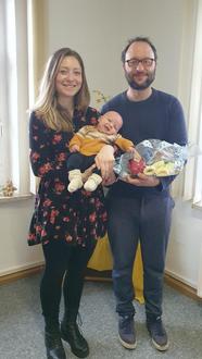 Der kleine Justus mit seinen Eltern Lisa und Marko Kohlmann.
