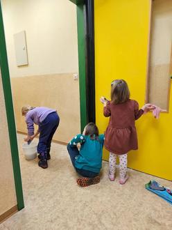 Wir Erzieher waren überwältigt, wie viele fleißige Helfer mit anpackten. Gemeinsam schafften wir einiges! … Garten harken, Sandkasten und Fallschutz umstechen, Vorplatz reinigen, Spielhügel fertig stellen, Maler- und Reinigungsarbeiten im Hort- und Kiga-Gebäude. Nach getaner Arbeit gab es ein herzhaftes Frühstück sowie Getränke, diese wurden uns gesponsert von der Sternquell-Brauerei und Bad Brambacher.