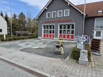 Deshalb wurde das Betonpflaster von den Kameraden der FFW Grünbach in Eigenleistung ausgebaut und für eine weitere Verwendung auf dem Gelände gelagert.