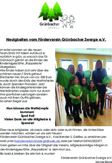Förderverein Grünbacher Zwerge e. V., Vorsitzender S. Geißler, zu erreichen per E-Mail unter Foerderverein-kinder-gb@web.de oder per Telefon 03745 222377.
