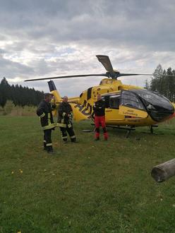 Die Feuerwehr Grünbach wurde zu einem Verkehrsunfall mit dem Stichwort "Auslaufende Betriebsmittel" gerufen. Es war eine sehr irreführende Alarmierung, denn am Einsatzort landete bereits ein Rettungshubschrauber.