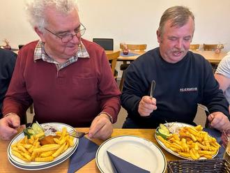 Der indische Gastwirt Sunil hatte für uns Platz im erweiterten Vereinsraum vorbereitet und das war auch enorm wichtig, denn das Lokal war rappelvoll! Und so begaben wir uns auf die Reise in eine fremde Gastronomie, geprägt von scharfen leckeren Suppen über Lammfleisch mit Reis bis zur bruzeligen Hähnchenpfanne. Natürlich kamen auch Traditionalisten mit der Schnitzelbestellung zu ihrem Glück! Selbst beim indischen Bier waren viele doch überrascht, wie gut es schmeckte! Bis zum Lokalschluss wurde geplaudert und diskutiert. Selbst auf die Bekanntgabe eines baldigen Grünbacher Neubürgers konnte an diesem Tag angestoßen werden. Am Ende konnte wieder einmal ein gelungener Abend von Altkameraden und aktiver Abteilung in das "Brigadebuch" eingetragen werden!