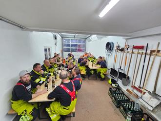 Viele Institutionen mussten über diese Übung vorinformiert werden. Ganz wichtig zum Beispiel der Notfallmanager der Deutschen Bahn, denn wir arbeiteten mit unserer Wasserförderstrecke unmittelbar am Bahndamm. Dieser war dann auch mit einem Kollegen sogar vor Ort, um unsere Arbeit einmal live zu erleben. Auch Leitstelle, Kreisbrandmeister, Bürgermeister u.v.m. wurden informiert und unterstützten unsere Übung. Vielen herzlichen Dank! Auch der Familie, welche uns das Einsatzobjekt zur Verfügung stellten, sowie den Kameradinnen und Kameraden der FF Muldenberg die die Imbissversorgung mit Getränk und Wurst zur Einsatzauswertung absicherten. Jeder der über 30 Kameradinnen und Kameraden, hat an seinem Einsatzort einen wichtigen Beitrag zum Gelingen dieser Übung beigetragen und bewiesen, dass auf uns Verlass ist!