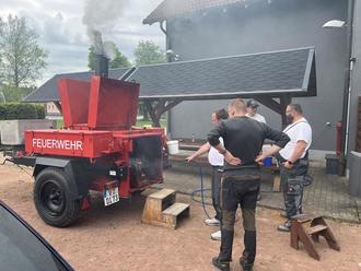 Das haben wir doch gern gemacht, zeigte sich dann die Kameraden der Grünbacher Wehr zufrieden. Der angekündigte und dann auch einsetzende Regen kam pünktlich, als alle zum Glück mit Essen fertig waren. Der Draht nach oben hat funktioniert!