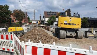 Die Firma UTR hat die Arbeiten im Kreuzungsbereich an der Krummen Straße begonnen. Hier erfolgt die Anbindung an den Mischwasserkanal.