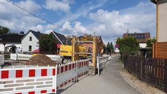 Im weiteren Verlauf wird der Abwasserkanal in Richtung Muldenberger Straße verlegt. Durch die Arbeiten am Kanal musste dieser Bereich für den Durchgangsverkehr gesperrt werden. Die Zufahrt zur Krummen Straße ist nur noch über die Muldenberger Straße, Bayerischer Hof, möglich.