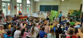Seit dem letzten Jahr darf sich die Grundschule Grünbach als eine der wenigen Grundschulen in Sachsen als „Klimaschule“ bezeichnen. Anlässlich dessen haben wir uns für eine Projektwoche rund um das Thema Umweltschutz entschieden. Diese Thematik ist allgegenwärtig und beschäftigt jede Generation. Besonders wir als Grundschule haben den Auftrag, einen nachhaltigen Fußabdruck in die Gesellschaft zu setzen und den Kindern bereits in jungen Jahren einen bewussten Umgang mit ihrer Umwelt mitzugeben. Jede Lehrkraft bereitete einen sogenannten Workshop vor. Die Kinder durften selbst entscheiden, über welches Thema sie in drei Tagen mehr erfahren wollen. So gab es bspw. mehr über Erneuerbare Energien, Plastikmüll in den Weltmeeren, Recycling/Upcycling und was die Ernährung mit dem Klima zu tun hat, zu entdecken. Am Ende der Projektwoche stellte jede Gruppe ihre Ergebnisse vor. Alle Kinder lernten sehr viel und hatten viel Spaß. Als gemeinsamer Abschluss wurden die neuen Mülleimer für jedes Klassenzimmer eingeweiht, die die Mülltrennung an unserer Grundschule noch leichter machen sollen. Wir freuen uns auf die nächste Projektwoche und sind bereits jetzt in der Planung für das kommende Schuljahr.