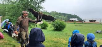 Zum diesjährigen Kindertag haben wir uns als Grundschule Grünbach etwas ganz Besonderes überlegt – einen Ausflug in die Falknerei Herrmann. Da die Kinder der 4. Klasse zum eigentlichen Kindertag am 1. Juni ihre Fahrradausbildung hatten, die alle erfolgreich abschließen konnten, haben wir unseren Ausflug auf Dienstag, den 6. Juni verschoben. Leider meinte es ausgerechnet an diesem Tag das Wetter nicht sonderlich gut mit uns und es war Regen und Gewitter angesagt. Getreu dem Motto „Es gibt kein schlechtes Wetter, nur schlechte Kleidung“, starteten wir mit zwei Reisebussen an der Grundschule. Um 10:00 Uhr kamen wir dann an der Falknerei an. Nach einem kleinen Spaziergang um das Gelände, durften wir eine halbe Stunde später zu den Vögeln. Bereits am Eingang empfingen uns die schönen Tiere, welche die Kinder interessiert beobachteten. Es gab Adler, Geier, Eisvögel, Falken und viele weitere spannende Vogelarten. Gegen 11:00 Uhr startete unsere Flugshow. Wir waren alle hellauf begeistert, wie unterschiedlich die Tiere fliegen und welche Besonderheiten und Eigenschaften sie haben. Trotz des Regenwetters hatten wir einen wunderschönen Kindertagausflug und freuen uns, wenn wir wieder einmal in die Falknerei fahren.