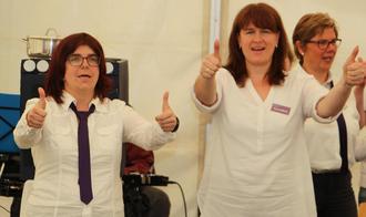 In dieser Zeit hat es viele schöne Erlebnisse gegeben, es wurden Erfahrungen gesammelt, Herausforderungen und Hindernisse gemeistert, Tränen vergossen, Lachen geschenkt, Entwicklungen vollzogen, Einzüge und Auszüge passierten, Integration in den Ort geschafft, Akzeptanz erlebt – Inklusion erfahren, Urlaubsfahrten erlebt und noch vieles mehr. Über 100 Menschen mit psychischer Erkrankungen haben in der Wohnstätte Grünbach schon ein Zuhause (auf Zeit) gefunden. Die Entstigmatisierung von Menschen mit psychischer Erkrankung gleicht einem Dauerauftrag, so tragen wir immer wieder Sorge, dass die Integration von psychisch kranken Menschen in die Gesellschaft gelingt. Die Gemeinde Grünbach und die Wohnstätte Grünbach zeigen eindrucksvoll das die Integration gelingt, dass zeigt sich vor allem in der Einbindung in Feste der Gemeinde, wie z.B. die Kirmes oder gemeinsame Grillabende mit der örtlichen Feuerwehr. Ja die Feuerwehr, diese hatte in den letzten 25 Jahren auch so manchen Einsatz in der Wohnstätte übernommen. Die Kameraden der Feuerwehr haben uns „trockengelegt“, Brände gelöscht und nicht zuletzt von Insekten befreit. Ein herzliches Dankeschön an dieser Stelle. Zu unserem Fest kamen neben Vertretern anderer Einrichtungen und Vertretern des Landkreises, die Bundestagsvizepräsidentin Yvonne Magwas, Sören Vogt Mitglied des Landtages, unser Bürgermeister Ralf Kretschmann und Christian Stoebe als Vertreter der Diakonie Sachsen. Den Festgottesdienst hielt unsere Pfarrerin Frau Frölich-Mestars, der Festgottesdienst wurde begleitet durch die inklusive Musikgruppe der Diakonie Auerbach e.V.