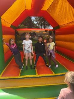 Die Hüpfburg stand auch bereit und wurde von vielen Kindern schnell erobert. Vielen Dank an den Bauhof für den Auf- und Abbau sowie an den Förderverein für das Ausleihen der Popcornmaschine.