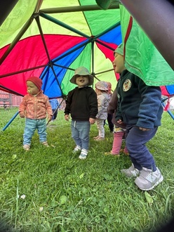 Die Kinder der Mäusegruppe feierten im Kindergarten ihren großen Tag, mit Seifenblasen, Schwungtuch, Luftballon und Kinderdisco. Zum Mittagessen gab es eine leckere Pizza.