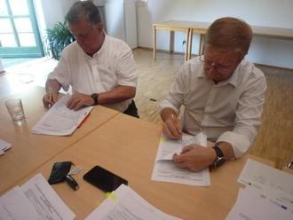 LAG-Vorsitzender M. Siegemund und Vorstandsmitglied J. Mann bei der Vertragsunterzeichnung der Kleinprojektförderung