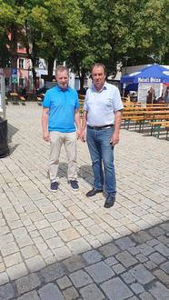 Im weiteren Verlauf konnte der Kirchturm besichtigt werden. Von der Plattform hatte man einen herrlichen Ausblick auf die Stadt Goldkronach und die Umgebung. Durch die örtlichen Vereine wurde die gastronomische Betreuung hervorragend abgesichert. Von Roster, Steak, gegrillte Makrele, verschiedene Salate, Holzofenpizza war für jeden etwas dabei. Dazu gab es auch ein gut gekühltes Bier und alkoholfreie Getränke. Wir haben gleichzeitig die Zeit genutzt, um über partnerschaftliche Belange und die Entwicklung unserer Partnerschaft zu sprechen. Eine Einladung zu unserer Kirmes wurde durch den Bürgermeister ausgesprochen. Ein weiterer Besuch wird am 29. Juli durch unsere FFW Grünbach erfolgen. An diesem Tag feiert die FFW Goldkronach ihr 150-jähriges Gründungsjubiläum.