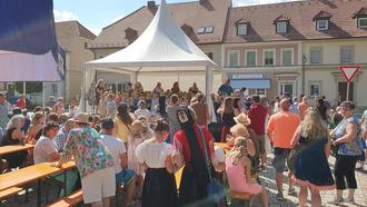Am 15. Juli fand in unserer Partnerstadt Goldkronach das traditionelle Marktplatzfest statt. Bürgermeister Ralf Kretzschmann und seine Frau machten sich bei hochsommerlichen Temperaturen auf dem Weg nach Goldkronach. Dort wurde am frühen Nachmittag ein abwechslungsreiches Programm durch verschiedene Vereine durchgeführt. Vor allem die Kinder vom Kindergarten begeisterten mit ihren Liedern und Darbietungen. Weiterhin gaben Kinder und Jugendliche vom Trachten- und Brauchtumsverein sowie vom Faschingsverein Kostproben von ihrem Können. Trotz der Hitze war es ein abwechslungsreiches und fröhliches Programm.