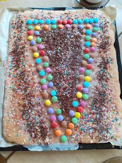 Unser dritter Höhepunkt folgte am 18.06.2024 - das Zuckertütenfest in der Igelgruppe. Zum gemeinsamen Frühstück stärkten sich alle mit herzhaften und süßen Leckereien. Die kleinen Igelkinder backten am Vortag für die zukünftigen Schulanfänger einen großen „Zuckertütenkuchen“. Dieser schmeckte wirklich hervorragen.