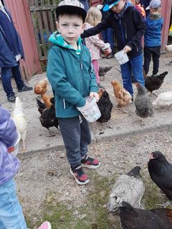 Später halfen wir der Bäuerin. Wir durften die Kühe melken und die Tiere füttern.