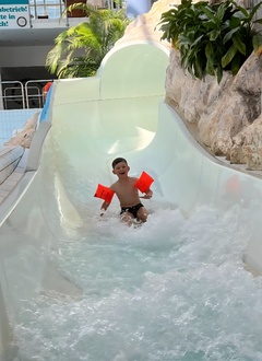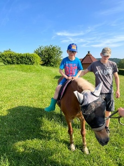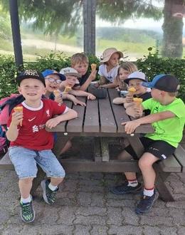 Endlich war es so weit, der Tag unserer Abschlussfahrt war da. Am Freitag, dem 13.06.25, fuhren wir Schulanfänger auf den Bauernhof nach Schöneck zur Familie Jentsch. Wie waren wir aufgeregt, als wir endlich nach dem Mittagessen in Richtung Bahnhof starteten. In Schöneck angekommen, schnappten wir uns unsere Reisetaschen und bezogen die Zimmer. Danach ging es ins Schwimmbad. Beim Hüttenwirt kehrten wir ein und schleckten ein leckeres Eis.