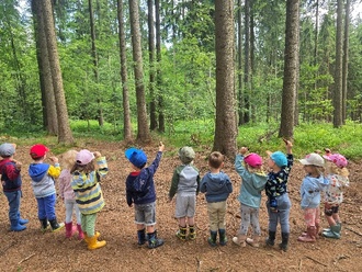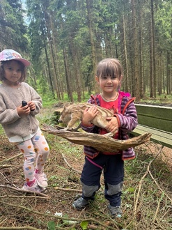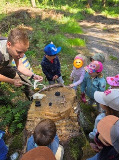 Am Dienstag, dem 24.06.2025, verbrachten wir Käfer- und Igelkinder einen Vormittag im Wald rund um den Genesenstein. Kristin und Max vom Sachsenforst brachten uns Tiere und Pflanzen des Waldes mit viel Anschauungsmaterial näher.