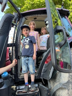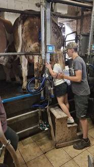 Im Anschluss startete auch schon der Rundgang auf dem Bauernhof. Raphael Jentsch führte uns überall hin und erklärte uns alles geduldig. Auf dem Programm standen: Reiten, Traktor fahren, Kühe melken, Hühner, Kälber und Ziegen füttern. Wir sahen sogar kleine Wachteln und Schweine.