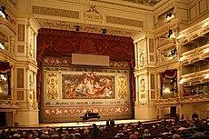 Der Bühnenbereich mit Schmuckvorhang und Proszenium Quelle: Wikipedia