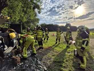 Der geplante Inhalt der Tagesausbildung war aus dem Einsatzleben gegriffen. Eine eingeklemmte Person galt es in dem 3-Türer-Fahrzeug zu retten. Wichtige Schritte vor, während und nach dem Einsatz konnten alle Feuerwehrfrauen und Männer wieder einmal auffrischen, um später im realen Einsatz fit zu sein.
