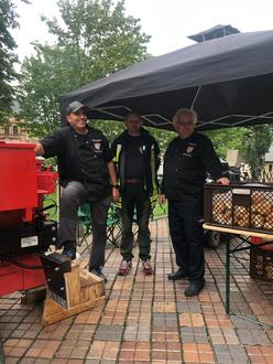 Pfarrer Grundmann hat die Feuerwehrkameraden aus Grünbach gebeten die Essenversorgung für den Festgottesdienst am Sonntag abzusichern. Im Rahmen eines Gemeindefestes, wurde Lutz Heidrich feierlich verabschiedet.
