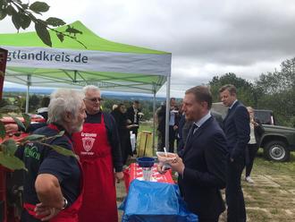 Nach dem offiziellen Teil freuten sich alle auf den kulinarischen Teil mit dem Kesselgulasch der Grünbacher Feuerwehr. Alle lobten die zünftige Speise und neben unseren Ministerpräsidenten gab es noch einige mehr, die um einen Nachschlag in ihren Teller baten.