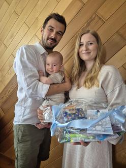 Der kleine Georg mit seinen Eltern Theresa Hermann und Dustin Dick.