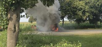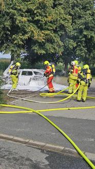 Das Fahrzeug war leider vollständig ausgebrannt, im Umfeld kam es bei Bäumen und Sträuchern zu leichten Hitzeschäden, aber ansonsten sind alle unversehrt geblieben. Am Ende konnte ein gelungener gemeinsamer Brandeinsatz der beiden Feuerwehren bilanziert werden.