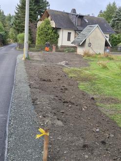 Durch die noch auszuführenden Arbeiten für die Stromversorgung durch die Mitnetz konnte die Zufahrt nicht ausgebaut werden.