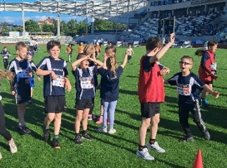 Es sollte doch nichts bei der Pendelstaffel, vor allem bei der Übergabe des Staffelstabes schief gehen. Und das tat es auch nicht. Es wurde angefeuert und mitgefiebert und alle Kinder haben ihr Bestes gegeben. Es gab daher nur Gewinner. Alle Kinder haben eine tolle Medaille und Urkunde für Ihre Teilnahme erhalten und waren stolz dabei gewesen zu sein. Anschließend konnten wir uns noch das DSC-Meeting mit den verschiedenen Wettkämpfen und dem abschließenden Feuerwerk anschauen. Es war ein ereignisreicher Tag für die teilnehmenden Kinder und die Familien mit einer Menge toller Eindrücke und viel Spaß. Ein großes Dankeschön geht an Frau Haufe, die immer mit viel Engagement und Einsatz für unsere Kinder bei sportlichen Aktivitäten am Start ist.