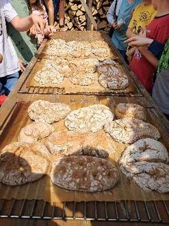 Dazu haben wir es geknetet und individuell geformt. Dann musste das Brot zum Backen in den großen Ofen.