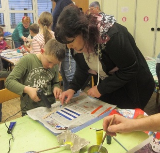Alle bastelten gemeinsam hübsche Holzhäuser und gestalteten eine Trinkschokolade in Form von einem Rentier.