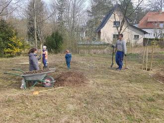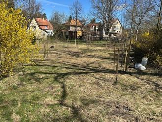 Von einem Projekt möchte ich noch gern berichten, der Ortschaftsrat suchte im Vorfeld noch Baumpaten für die Wiese am Waldsaum, wir wollten diese im Zuge des Frühjahrsputzes gern zu einer Streuobstwiese umgestalten, das ist uns glaube ich auch mit den sehr vielen Interessierten und Kindern auch sehr gut gelungen, der Platz nimmt wieder Gestalt an, mögen die Bäume, es sind alles alte Apfelbaumsorten gut anwachsen und gedeihen, so dass wir / ihr die nächsten Jahre schon den ein oder anderen Apfel enten könnt.