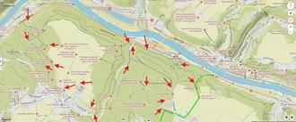 An den mit einem roten Pfeil markierten Stellen, werden entweder Beschilderungen (Sperrung) oder Sicherheitsposten vorgehalten, grün dargestellt beschreibt die Umleitung.
