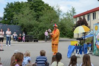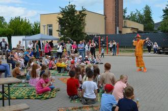 Ein gut organisiertes Rahmenprogramm, machte den Nachmittag zu einem schönen Tag. Dank des Sponsorings durch den Flughafen Halle-Leipzig, gab es in diesem Jahr ein Mitmachprogramm mit „Micky“. Bei strahlenden Sonnenschein und ausreichend Platz auf dem Schulgelände, konnten die Kinder nicht nur aktiv bei Micky, dem Alleinunterhalter ihr Können im Zaubern, tanzen und singen zeigen, sondern hatten auch an verschiedenen Stationen, wie dem Glücksrad die Chance auf Gewinne. Die Mitmachstationen waren nur mit Hilfe des Kuratoriums, der Praktikanten des Hortes und durch die zahlreichen Sachspenden der ortsnahen und ortsansässigen Firmen wie DHL, Friedgarten Mitteldeutschland und Gesundheitsport Schkeuditz möglich.