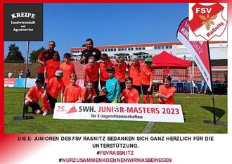Am 10.06.23 durften unsere E-Junioren beim Juniors-Masters in Halle teilnehmen. In der Teilnehmerliste standen unter anderem Teams wie RB Leipzig, Union Berlin, Hansa Rostock und Bayern München.