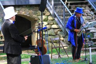 Denn auf Grund der Wetterlage konnten die Instrumente nicht „ausgepackt“ werden – es war viel zu feucht. Trotz des Regens ist die Wiese um das Teehaus und das darum liegende Gelände für derartige Veranstaltungen mehr als passend. Wir haben das Beste daraus gemacht.