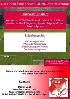 Weiterhin suchen wir einen Platzwart. Wer hat Lust in die FSV-Familie zu kommen und uns diesbezüglich zu unterstützen