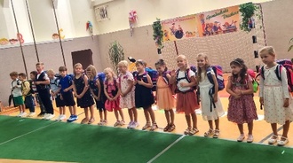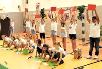 Am 19. August 2023 wurden die ABC-Schützen ganz herzlich in der festlich geschmückten Sporthalle begrüßt. Auch die Kätzchen Mimi und Mo wollten in die Schule gehen. Zusammen mit den Programmkindern und den Erstklässlern konnten sie ihre erste Unterrichtsstunde besuchen.