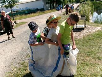 Neben Armbrust schießen und Sackhüpfen in einem großen „Hop-Bob“, gab es - dieses Jahr neu - die Seilerei. Hier konnten wir Seile herstellen wie im Mittelalter. Jeder nahm ein Stück Seil mit nach Hause. Das hat allen sichtlich Spaß gemacht! Auch die „Slack-Line“ war wieder mit dabei. Zum Mittag gab es leckere Bratwürstchen und zum Abschluss war noch ein Kräftemessen beim Tauziehen angesagt.