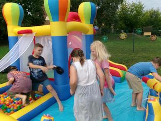 Zum krönenden Abschluss der Sommerferien konnten sich alle Kinder auf der Hüpfburg austoben, welche uns Fam. Schäfer freundlicherweise zur Verfügung stellte. Dafür möchten wir uns recht herzlich bedanken!