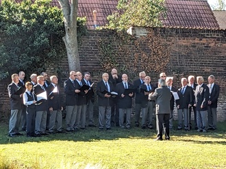 Dort stärkten sich alle Teilnehmer zunächst, der Männerchor erfreute mit zwei weiteren Liedern, zu Sekt u. a. m. wurde ein Toast auf die Friedhofsgestaltung ausgebracht und eine Fotoausstellung konnte besichtigt werden, ehe dieser Teil der Feier, der gleichzeitig eine kleine „Dankeschön-Veranstaltung“ für alle Unterstützer war, zuende ging.
