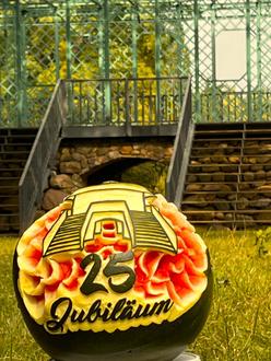 am 15. September hat der Verein sein 25-jähriges Jubiläum gebührend gefeiert. Nach Begrüßung und Rückblick auf 25 Jahre Förderverein „Park Dieskau“ e.V. durch den Vorsitzenden Prof. Dr. Hans-Joachim Kertscher gab es spontan Statements und Erinnerungen langjähriger Vereinsmitglieder anhand ausgewählter Fotos, welche eigens dafür mitgebracht wurden. Ganz alte Fotos aus den Anfängen des Parks und den Anfängen des Vereins, neue Fotos, sogar gemalte Bilder waren dabei. Zu jedem Bild gab es etwas Interessantes zu berichten. Fazit: In den 25 Jahren wurde Erstaunliches geleistet und Einiges erlebt. Anschließend gab es ein Mittags-Buffet der Firma Catering Bruder mit einem Jubiläumsgruß - auf eine Melone geschnitzt.