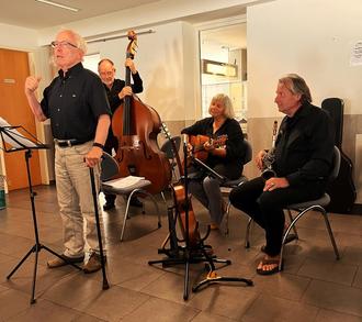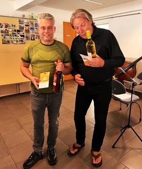 Auch Bürgermeister Kunnig erschien und überreichte dem Verein eine Riesen-Sektflasche mit einer Spende für den Park. Einen weiteren Höhepunkt bildete der Auftritt des von Vereinsmitgliedern aus der Taufe gehobenen Quartetts „Namenlos“.