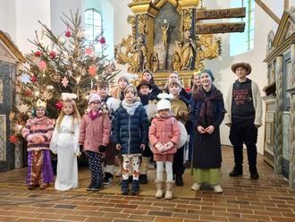 Ich bedanke mich bei allen, die für das Gelingen der Christvesper mitgeholfen haben, die in den Probenpausen für Kuchen und Tee gesorgt; und die ihre Kostüme zum Tausch angeboten hatten. Herzlichen Dank an André Bielig für sein leidenschaftliches Orgelspiel und natürlich auch an Familie Kuhnt aus Schwoitsch für den Weihnachtsbaum. Er war eine Zierde für den Kirchenraum.