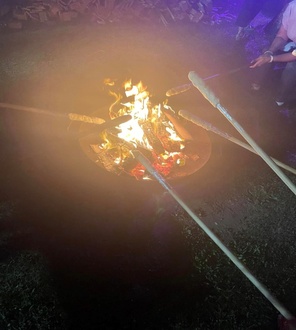 Die Kinder haben sich über einer Feuerschale Knüppelkuchen zubereitet. Bei schöner Musik wurde das Tanzbein geschwungen. Nach Sonnenuntergang konnte sich am Lagerfeuer gewärmt werden.