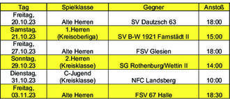 Heimspielplan Fußball vom 20.10. bis 03.11.2023