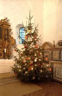 Für die Osmünder Kirche suchen wir einen Weihnachtsbaum, der wieder so hübsch geschmückt werden kann wie auf dem Foto vom letzten Jahr.