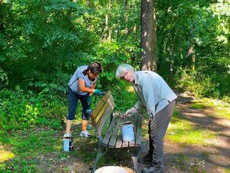Alle Bänke haben einen, manchmal sogar zwei neue Anstriche erhalten. Zwei Naturbänke wurden bereits im letzten Jahr gestrichen. Die zweckgebundenen Spenden fanden also eine perfekte Verwendung in Form von Holzschutzfarbe, Holzlatten uns Schrauben.